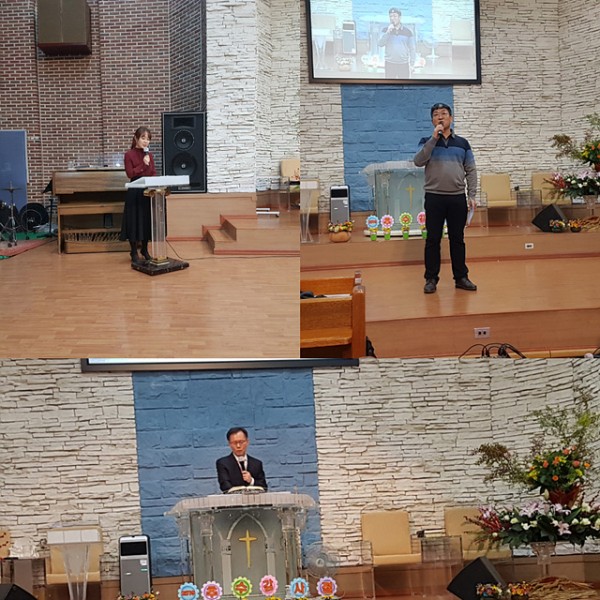 2019, 11, 17일(주일) 추수감사주일 저녁예배를 담임목사님 말씀 인도와 류원경 집사님의 기도로...