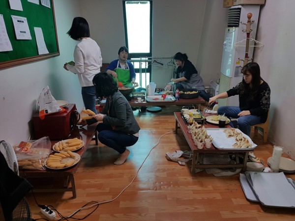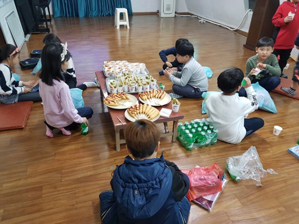 아이들을 위해서 떡볶이와 오뎅, 핫도구, 각종 튀김을 만들어 주신 집사님들과 교사들에게 감사를 드리고