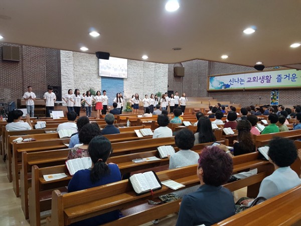 헌신예배를 위해 노력한 청년부 형제, 자매들을 하나님께서...**