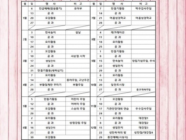 2019 유아부 행사계획 및 교사 페이지 정보 작성자 관리자 작성일19-07-23 23:42 조회9,036회 댓글0건 다음글 목록 본문 2019 유아부 행사계획 및 교사 댓글목록 등록된 댓글이 없습니다. 다음글 목록